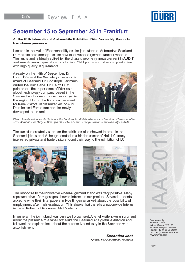 在下面找到Dürr最近的客户项目、新产品、活动和其他新闻发布的所有信息。如果您对出版物有任何疑问或需要进一步的信息,请与指定的联系人联系。