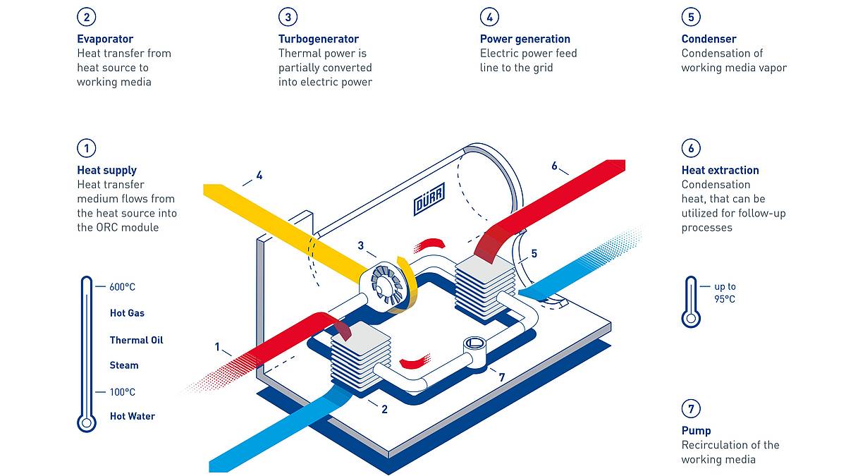 一个tecnologiaCyplan®我们可以把它转换成一个程序,包括água quente, vapor, óleo térmico e gás quente。安巴,他是一个温度很高的人,他是一个电的人。Além da energia elétrica gerada, ORC DürrCyplan®温度为até 95°C,系统温度为。所以允许我们的系统运行instalações de geração de calor e energia combinadas, com eficiências总能量95%的能量。